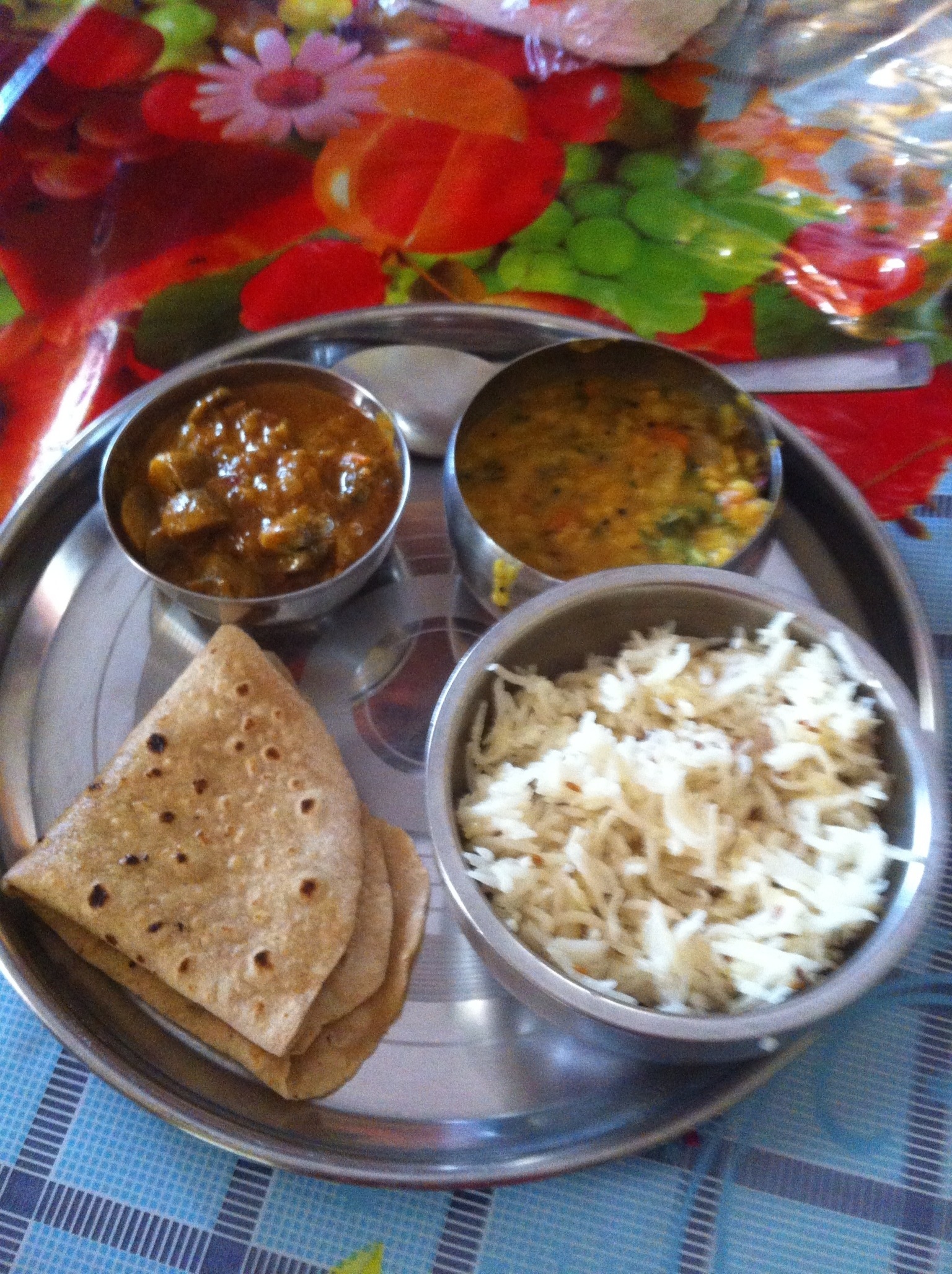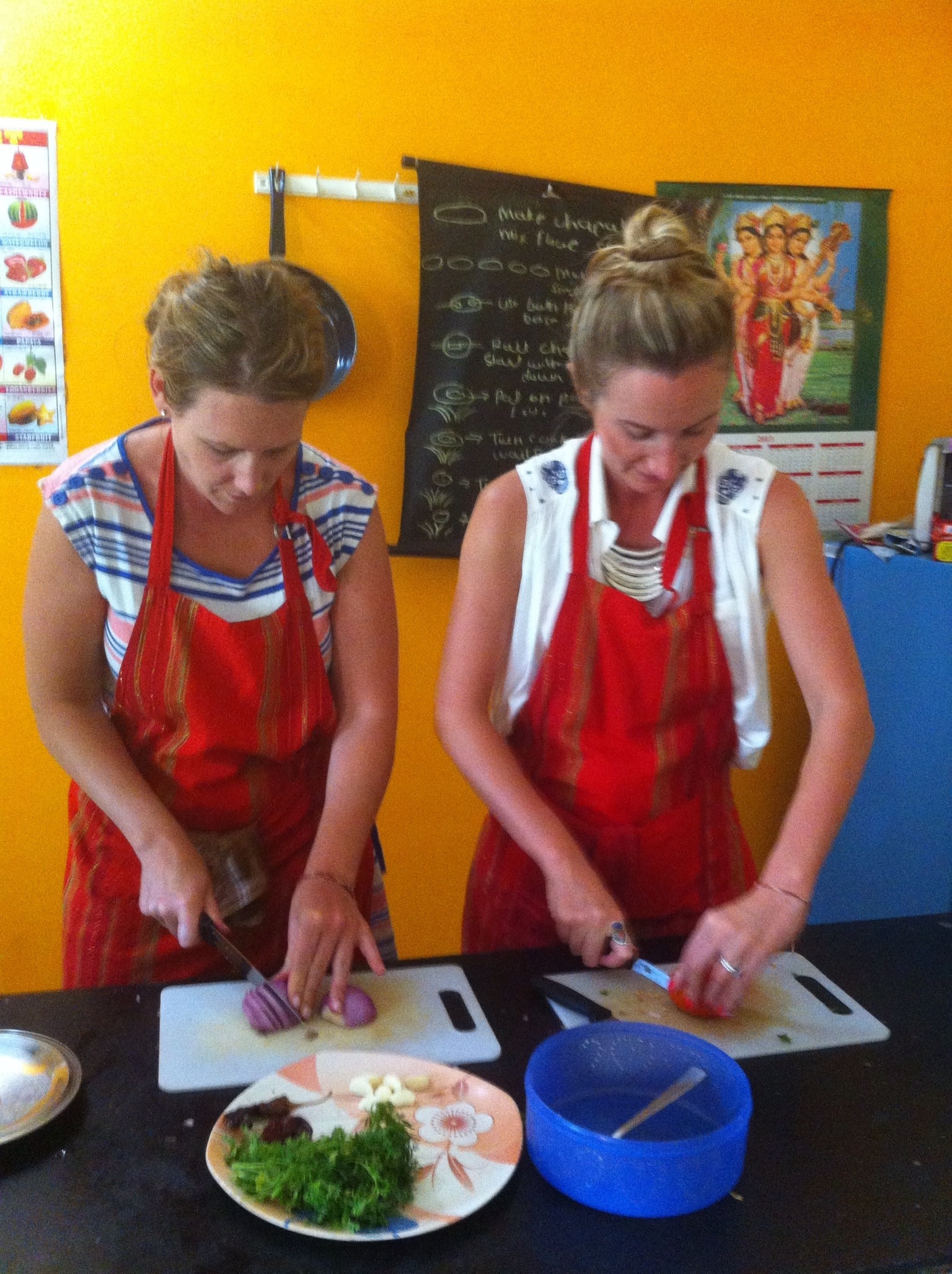 So I kinda got the Thai style of cooking sorted and now I want to see if I can become an Indian nigella by going to a cooking class here. The teacher is a happy lady called muhkti who runs the course from her kitchen. It is just me and two Australian girls in the class and the dishes of the day are mushroom masala, chapati, paneer panek (which is spinach and cottage cheese curry) and potato and spinach filled naan bread.