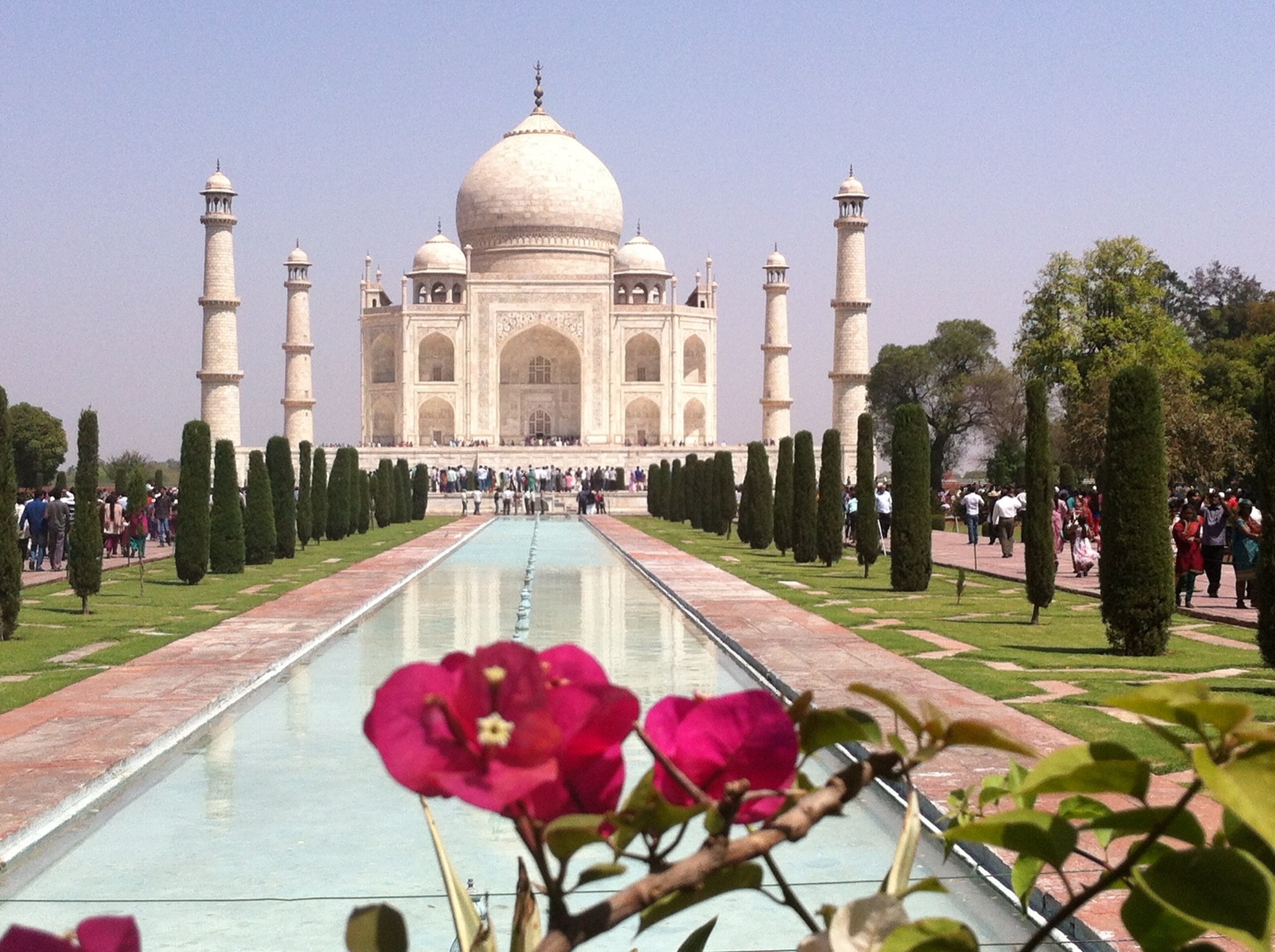 When I was getting my Indian visa in the embassy in Bangkok there was this huge mural of the Taj on the wall and waiting in line I promised myself that I would see that with my own eyes. Well this was the day and even after the stressful journey I was beyond giddy. After entering a small atrium I looked through these huge doors and saw it. I burst into tears, was so overwhelmed with the beauty of it as well as the journey it had taken me to get here.