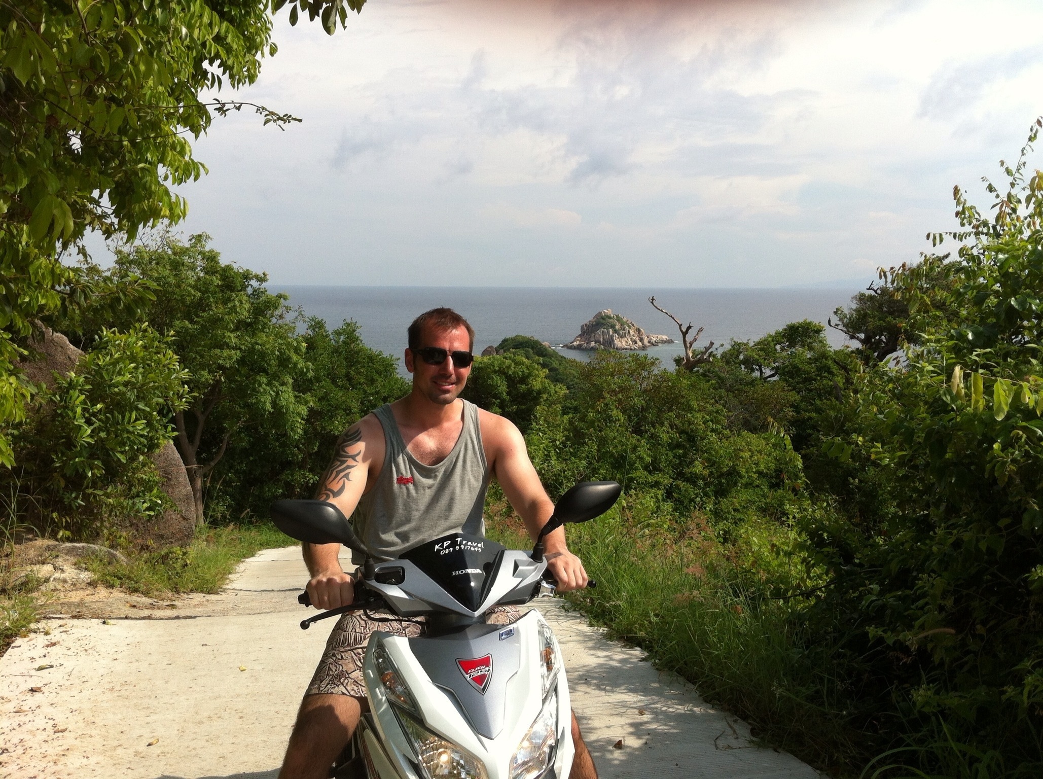 We decide the best way to see this amazing island is to hire motor bikes, well they are more like granny scooters but without the wire bucket at the front, but this is how everyone gets around. You don’t even need to have a driving licence to hire one of these but luckily Adam has a full uk motorbike licence and I’m stubborn enough to make sure I wear a dorky helmet that I feel safe.