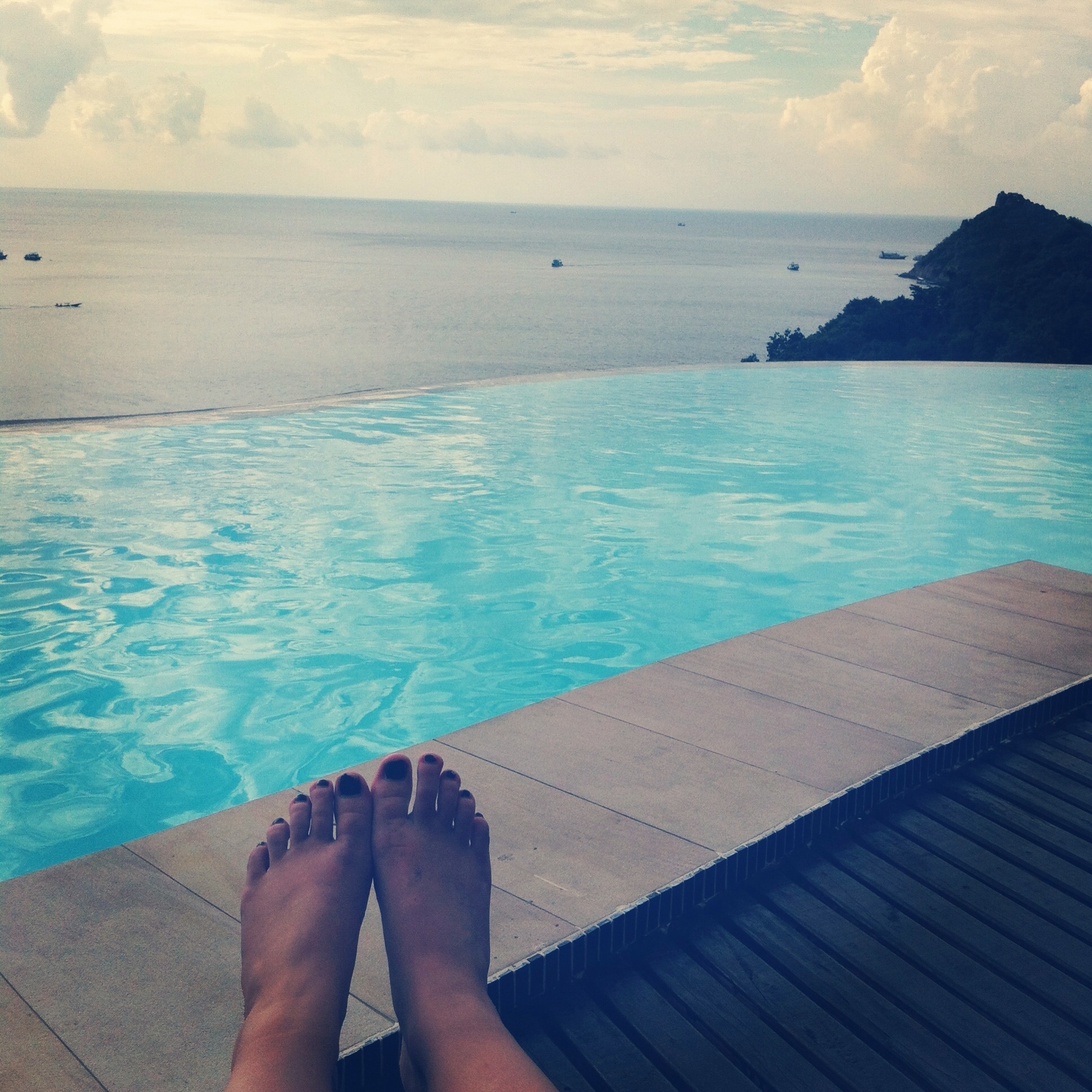 On our way back from the bay our stomachs were telling us its time for food so we stopped by this restaurant high in the hills. The guy outside said ‘oh we have a swimming pool here that you can use as well’, fantastic as we were covered in sweat and sea water. Err that dude didn’t tell us that the pool was an infinity pool over looking the ocean! We were like giddy children desperate to belly flop straight in but as there were some very rich people around (this was part of a posh hotel) we had to return to the reserved British we are and daintily dip our feet in. Opportunity wasted but the view still made up for it!